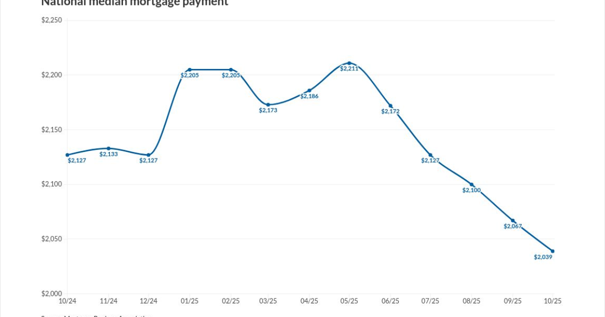 The national median payment for purchase applicants fell nearly $30 to $2,039 last month compared to September, according to the MBA’s Purchase Applications Payment Index. That’s down $88 from a year ago and
